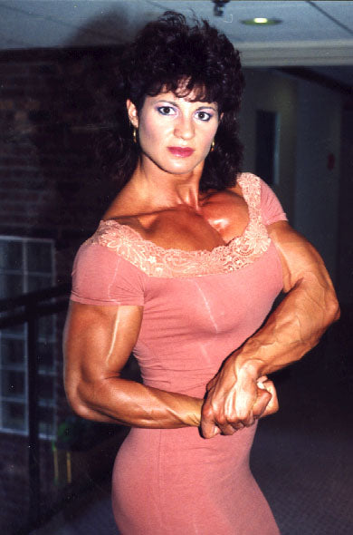 Our earliest material of Joanne is on 119, and our second and last video of the British star was taped in 1990, when she was in her best overall shape ever- including size, shape and good looks. Lots of posing in dresses showing off the best calves ever in women's bodybuilding, and this video contains some fun 'camcorder' footage taken at an old railroad tunnel, as she hits the shots in swimsuits and dresses. Video/DVD runs 2 1/2 hours.