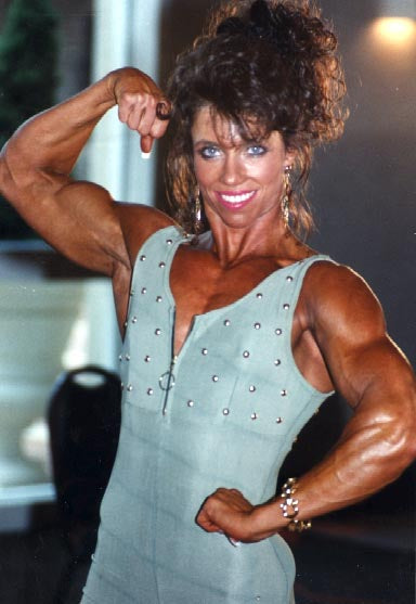 This was our first session with Cathey, as we met the Canadian Champ when competing as an IFBB pro for the first time at the 1995 Jan Tana. We shot her in and around the meet hotel in several outfits, using our pro equipment for all scenes except for one- we used a camcorder for the outfit that Cathey was in for her WPW print magazine cover on the Jan/Feb 1996 issue. At 5'2" 123 pounds she was very lean and defined, with lots of size and bright blonde hair- a look loved by the fans and judges alike. Lisa Smith (not to be confused with Lisa Lorio Smith, though they were both from Louisiana....!) was in the Tana amateur bodybuilding contest and the 5'6" 132 pounder was in great shape throughout, with terrific arms, back, chest and deep cut abs topped off by a beautiful mane of brown hair. She, like Cathey, posed in several swimsuit and dress items and was interviewed.