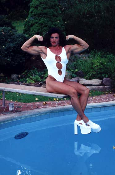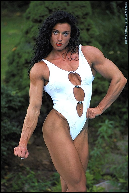Beatte was the Austrian Bodybuilding Champ and we met her for the first time at the 1998 Jan Tana, doing our photo/video work with her a bit after the show. She was in contest shape at 5'6" 160 pounds- very hard and lean, with perfect symmetry. Her 'package' included very good upper body poses topped off by stunning beauty, featuring deep blue eyes and a very attractive mane of brown hair. She does mostly repwork for her gym footage (though she went very heavy for curls), poses in swimsuits and dresses, and is interviewed. The '98 Tana was her first pro show, but as far as we know, she never came back to the US to compete again. This was our only title with her, but she is also on Ray Martin- 164.