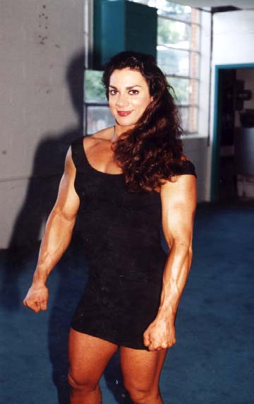 Danet had been competing in local/regional shows in New England before hitting national contests in 1999. We did our photo/video session with her at the Nationals that year, when she was a very lean and wiry 5'2" 110 pounds. She was obviously not bulked, but showed off a 'racehorse-type' physique- lean legs, but a very muscular and hard upper body, featuring some of the best peaked biceps ever. She hits the shots in a bikini and several dress items and is interviewed. In addition, her stage routine at the Nationals, and her footage at the 1998 Extravaganza Strength contest, are also included. Danet gets 80 minutes here, and Renee, 40 minutes. Our session with Renee was in 1996 when she was in strong off-season shape at 5'2" 145 pounds, but she left the scene before we were able to do our contest shape work with her. We were able to do some very strong gymwork with her (racking the lat pulldown machine, bodyweight curls for reps, etc), posing in a bikini and dress, and an interview. She was from New Jersey, but we dont remember seeing her after 1996.