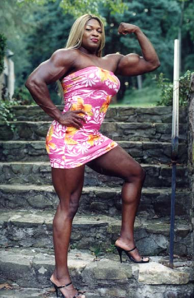 It is hard to pinpoint who the 'largest' woman bodybuilder of all time was, but any discussion of that would include Tatiana Butler, as she checked into this photo/video session at a huge 5'10" 200 pounds- off season of course, but with a decent level of definition, particularly for her biceps, triceps, back and chest poses. Freelance videographer Tony Duffy did the work here, putting Tatiana through the paces in the gym, where she does a combined workout of reps and strong lifts. In addition to the 'regular' physique posing, Tony taped her posing with an axe (includes chopping wood!) and bow and arrow for a couple of unique scenes. She had been competing in local/regional New York area shows in the late 90's, and did do a few national level shows around the time of this taping in 2000, but never reached the heights she could have. At only 27 years of age, she already had a very symmetrical physique, complete with huge 17" arms, 27" thighs and a bright personality. Video running time about 2 hours.
