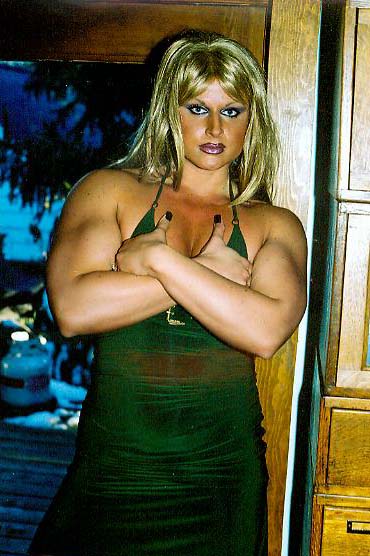 This was our third and last photo/video session with Nuriye, and as far as we know, she still had not competed at this time, making her probably the best WPW physique model who was never in a contest (Doughdee Marie was in one...). Her first two sessions are on 504 (now on 696) and 528, and this session in 2004 shows her at her best, off-season again at 5'9" 200 pounds, featuring 16" arms, 17" calves and 27" thighs. Her gymwork continued to feature very strong lifts, particularly for her legs, and that was followed by posing in several outfits and an update interview. She was still only 25 years of age, and her immense size was topped off by a great face and beautiful blonde hair. Nuriye left New Jersey about five years ago but is still on the scene for photo shoots in Florida going into the 2010 season. Video running time about 100 minutes.