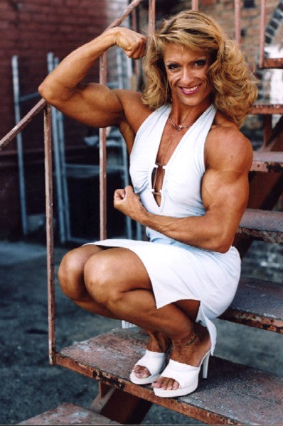 Emery just won her class at the 2004 Nationals, quite an accomplishment for anyone, not to mention for a woman who was morbidly obese just a few years ago!! At age 40, she shows terrific muscle size and definition and beautiful blonde good looks. Her legs are very well developed and defined, but a special nod goes to her very dense and defined upper body – particularly her triceps, biceps, back and chest. Emery lives in California so we had our west coast team led by Tony Duffy do the work, and this is probably Tony’s best video effort – perfect lighting and lots of full length and close up posing in dresses and bikinis, and lots of repwork in the gym to get her pumped up. Emery’s first show was in 2001, so to turn IFBB pro so soon is quite a feat!! Video/DVD runs 1-½ hours.