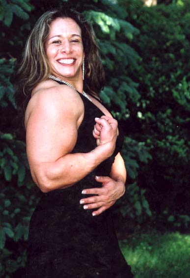 We saw photos of her one-day and within the week completed this photo/video session with her. Danielle is a most unique woman (only 24!!) who enters “Strong Woman” contests, power lifts and does Pro-style wrestling, and she has an incredible physique for her age and size (5’2” 180 pounds)…another Doughdee!!). Her gymwork was one of the best of all time, right up there with Luebke/Beattie, etc, and has Doughdee’s enthusiastic “go for it” attitude. Her lifts were beyond belief, including squatting nearly 600 for reps (no wraps), dead lifting 565 off a bench (tougher than off the floor), curling 175 pounds with a spotter among other lifts. And, “despite” her 26” thighs and 16” biceps, she is as limber and athletic as the top fitness women and we have her doing back flips and jumping toe-touching as well as limbering up. After that, she does some bodybuilding posing (she will do her first contest this fall) in a two piece and a dress – her first photo session ever, flowed by her interview. For sure a one of a kind woman and physique/strength model. Video/DVD runs 100 minutes.